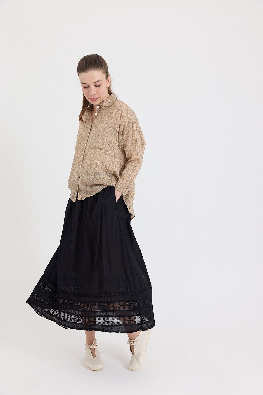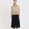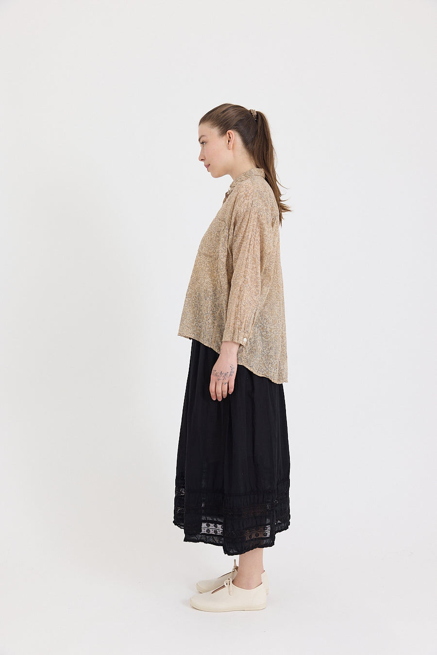 The cotton voile is silky soft and slightly sheer, we recommend you wear it with one of Metta's cotton or hand loomed silk camisoles, or style it over your own base layer.