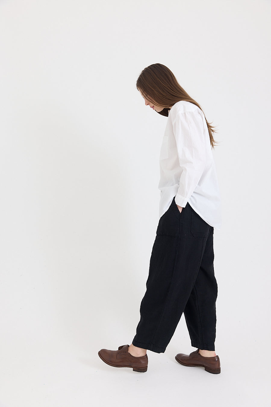 The Frankie Peg Pant is a mid-weight linen pant with a beautiful drape. The Frankie Peg Pant is made from a luxurious 100% European linen, and designed in Melbourne. It features a relaxed fit around the hips, creating a flattering cocoon shape.