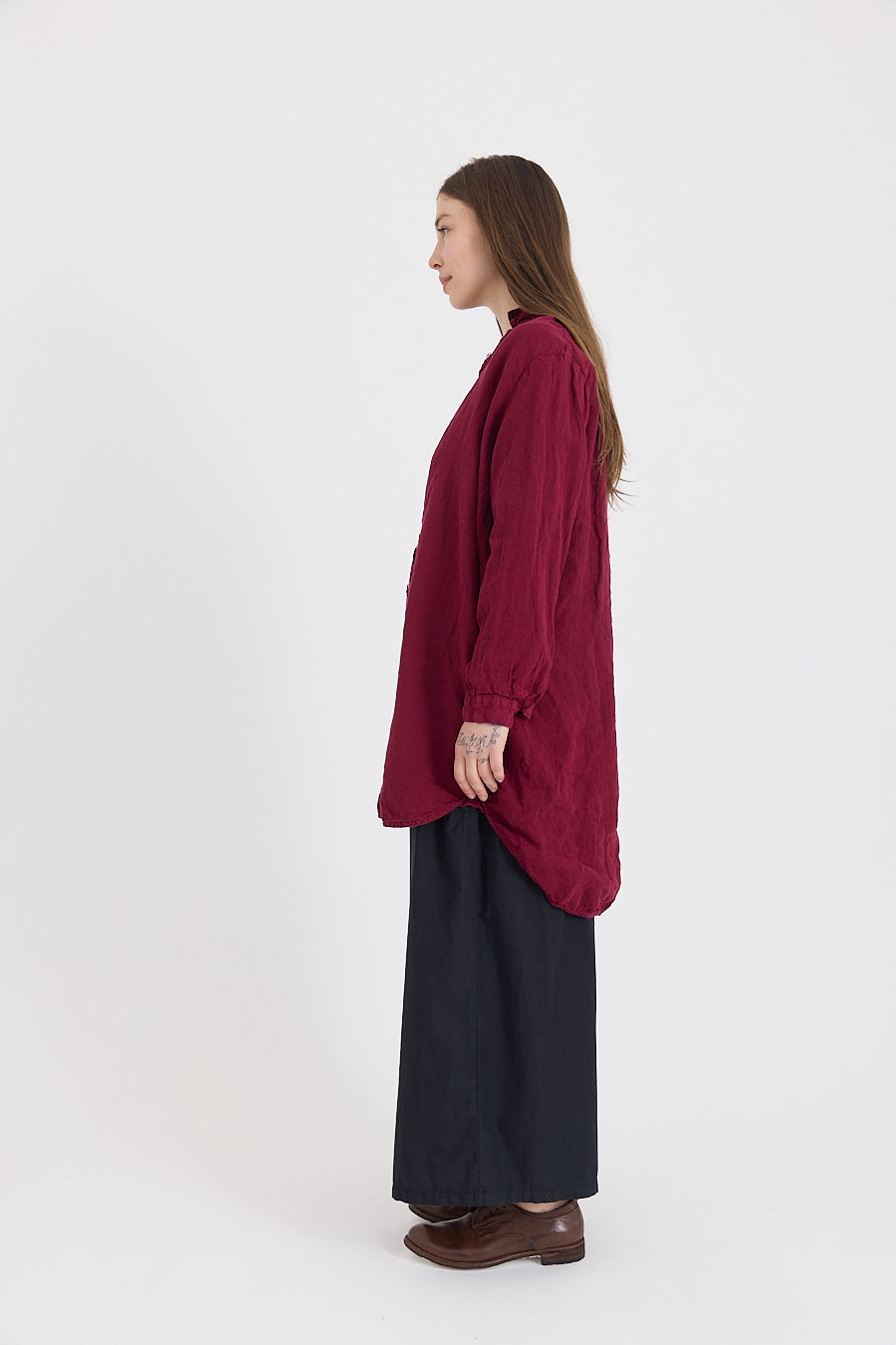 Inspired by our Metta Melbourne staple Man Shirt, the Manon is a tunic style oversized women's button-up, crafted from European grown, woven and sewn linen. Featuring the same curved hem, wide silhouette, and back pleat detailing as the Man Shirt, but with a slightly smaller collar, and longer silhouette that can be worn open, closed, layered or belted.