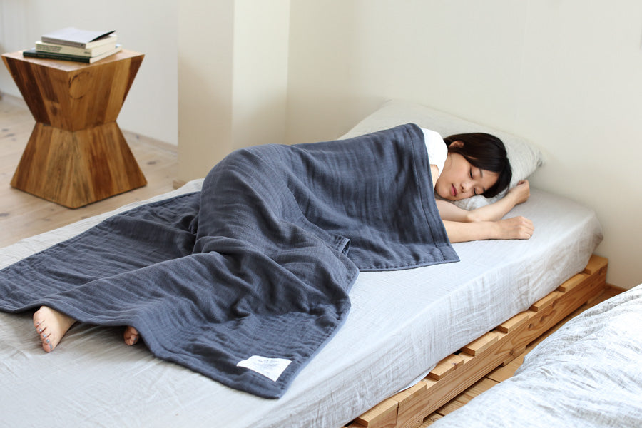 A Bath towel where they took the middle layer of the traditional 20-count 3-ply gauze and replaced it with a 1/2-weight weave. Utilising an irregular weave to produce a unique, exquisitely soft texture. Lighter, softer and quick to dry, and still highly absorbent, the 2.5-PLY GAUZE TOWEL comes in Medium and Large sizes, plus a longer scarf type and washcloth. They created a natural depth in colour by slightly varying the dye for the warp and weft. Perfect for travelling.
