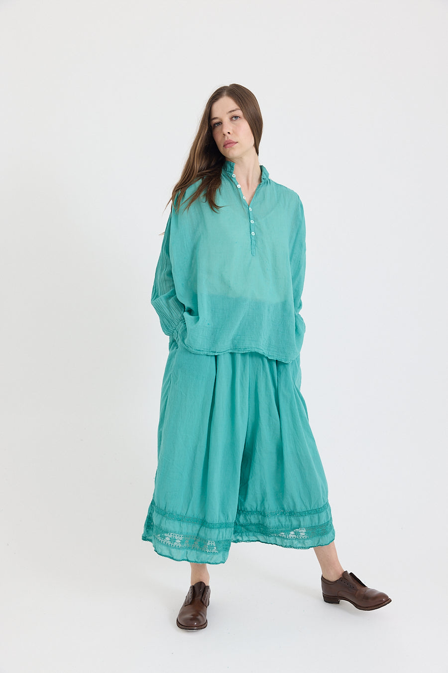 Inspired by Victorian undergarments and featuring an elastic waistband, internal drawstring and pockets, the Harriet Bloomers feel reminiscent of times past. Featuring a lace hem, which is crafted using one of the last antique lace machines in the world. We love styling the Harriet Bloomers under dresses to add volume and extra coverage, especially when the lace hem is still visible. Crafted from a semi-transparent silky soft cotton voile.