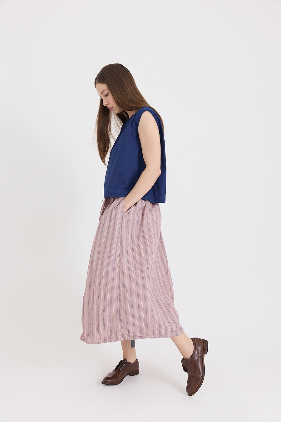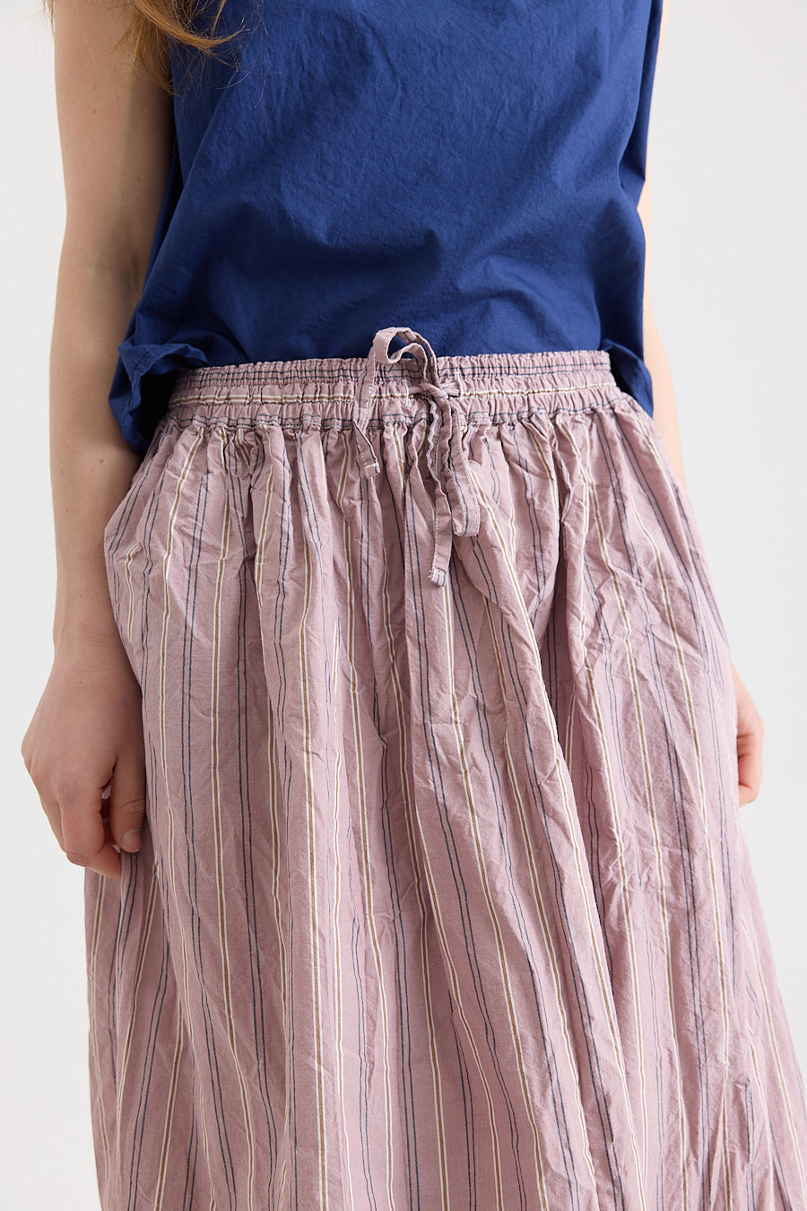 Of course, the Emily features side pockets for practicality and a linen ribbon drawstring waist, allowing it to be worn on the waist or hip. This season we have released the Emily Skirt in a Japanese typewriter cotton stripe that has a crunchy and crisp handle - perfect for Summer.