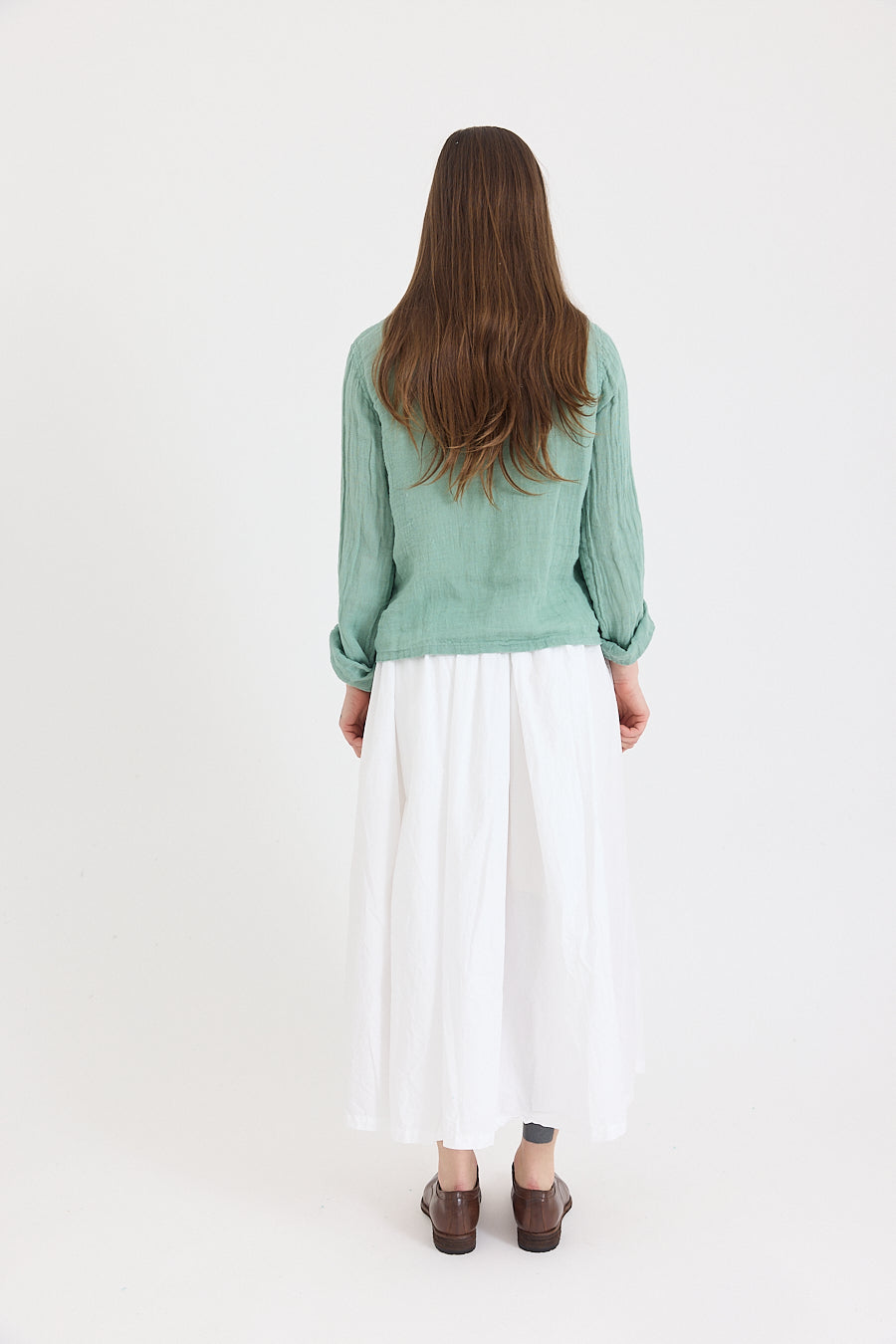 A very handy layering piece, the Lilly Top is often purchased alongside our sleeveless linen dresses for chest and arm coverage. Having some transparency due to the nature of the woven linen gauze, we love to style the Lilly Top over Metta’s cotton and silk camisoles.