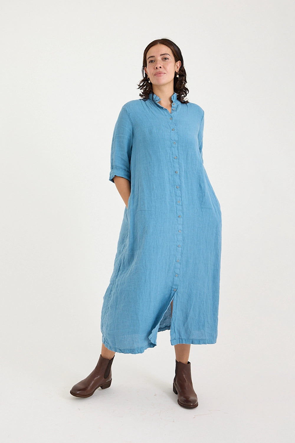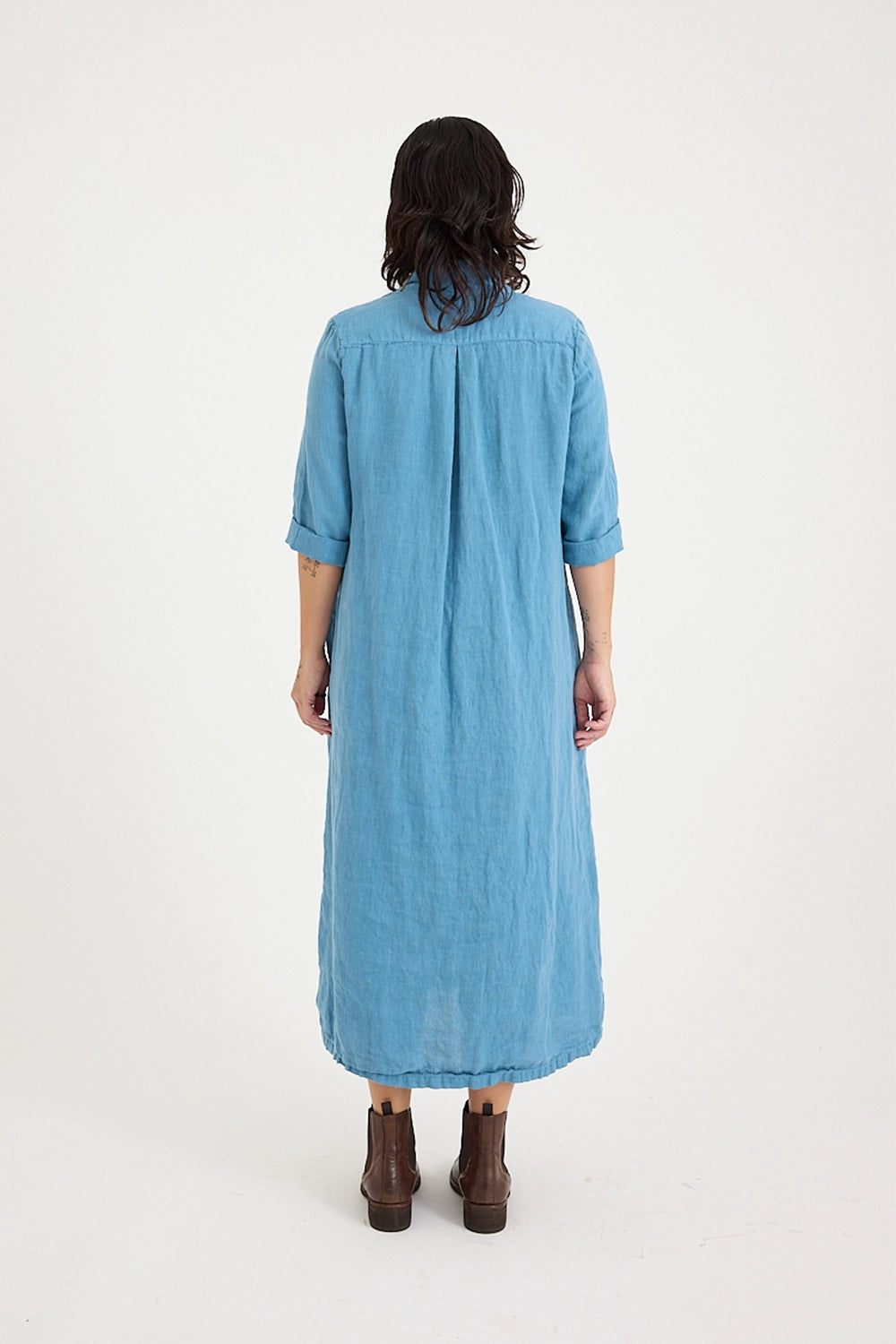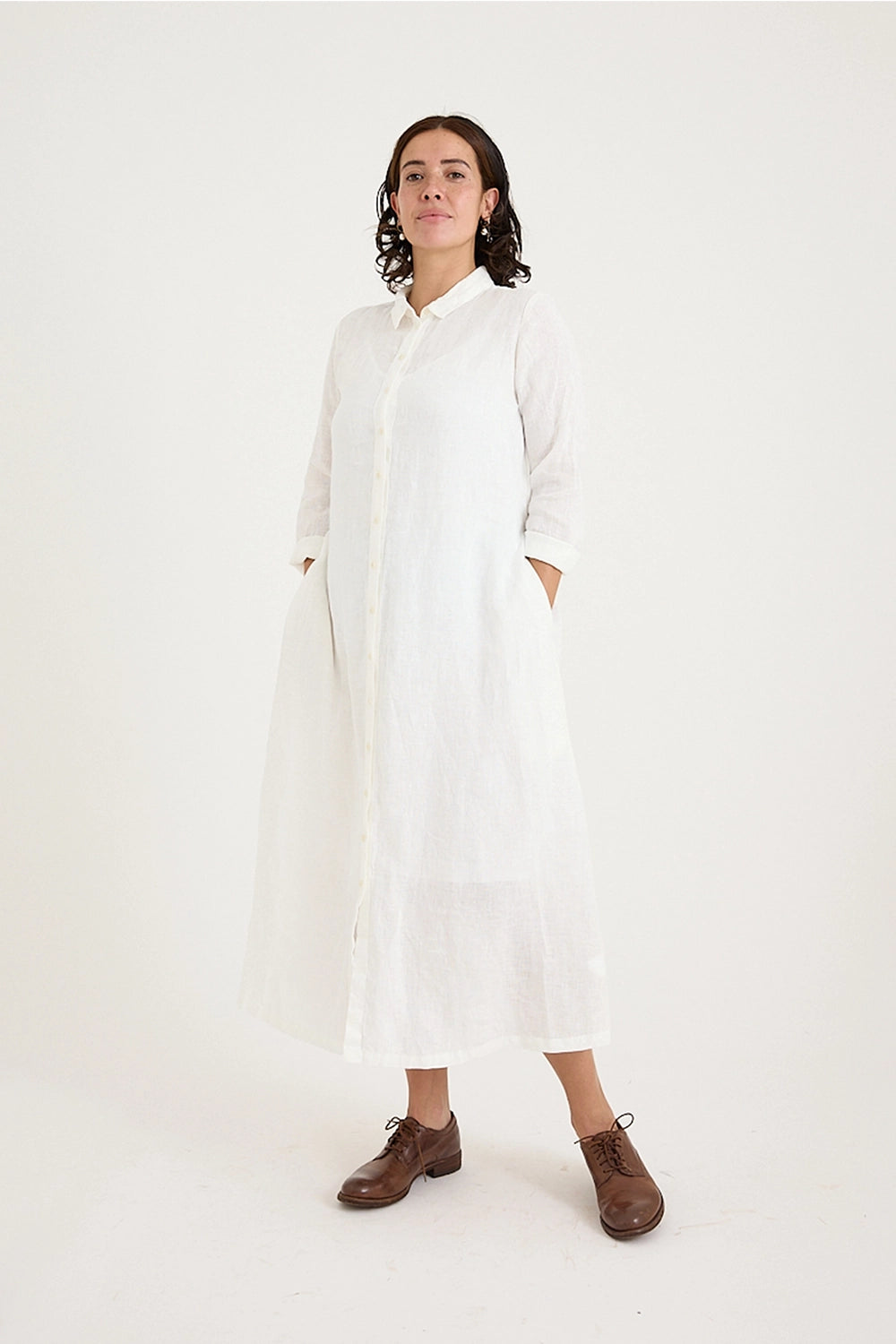 The Rose Dress in Lightweight Linen is an effortlessly flattering long-sleeve button-through shirt dress, with a traditional shirt collar. With a light drape across the body, the Rose features a thin self-fabric belt and belt loops. Naturally, the Rose has two hip pockets in the side seams, a single back pleat at the yoke for a comfortable fit across the back, and small Corozo buttons along the full-length front placket. Runs true to size, but please cross-check our measurement guide to find your perfect fit.
