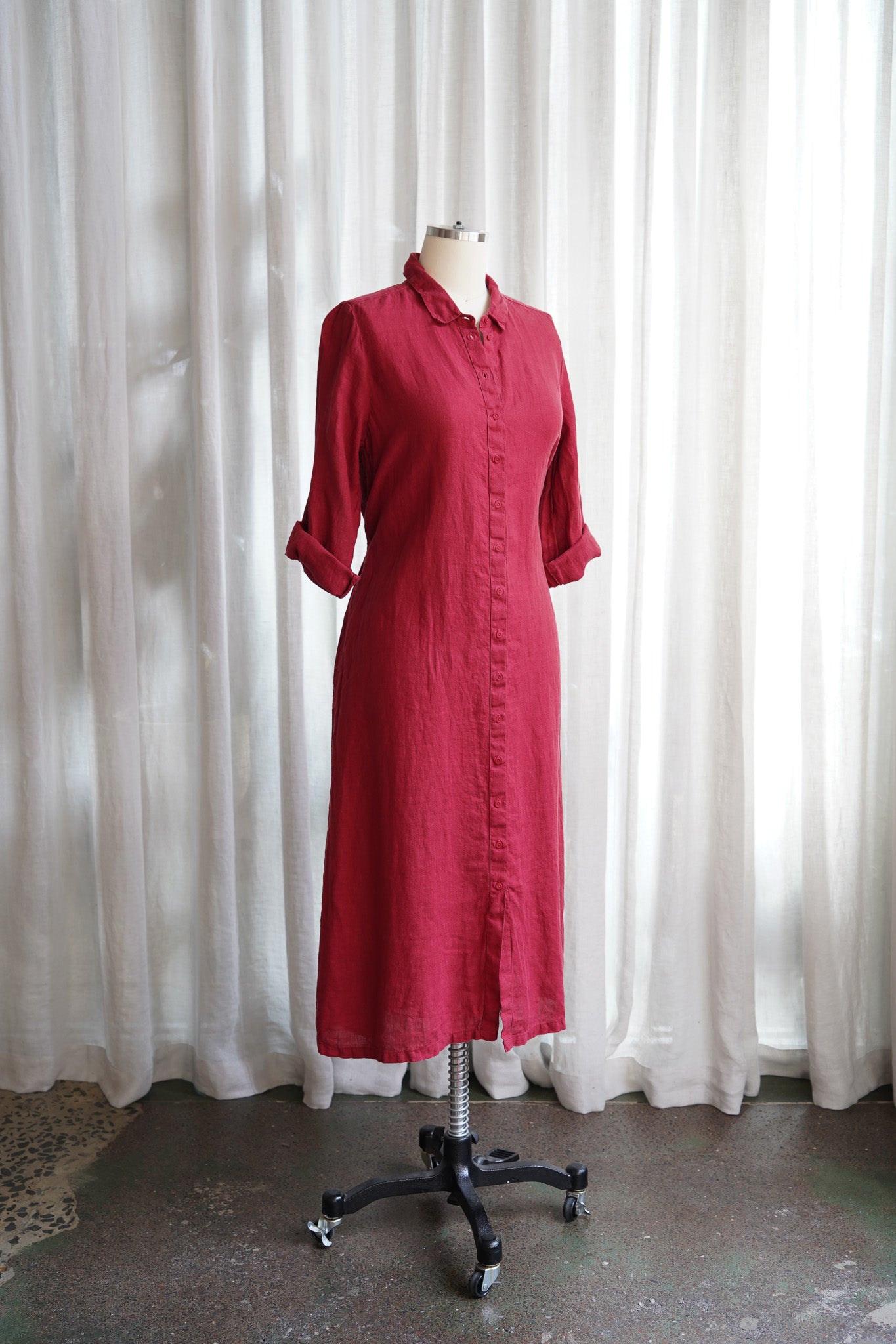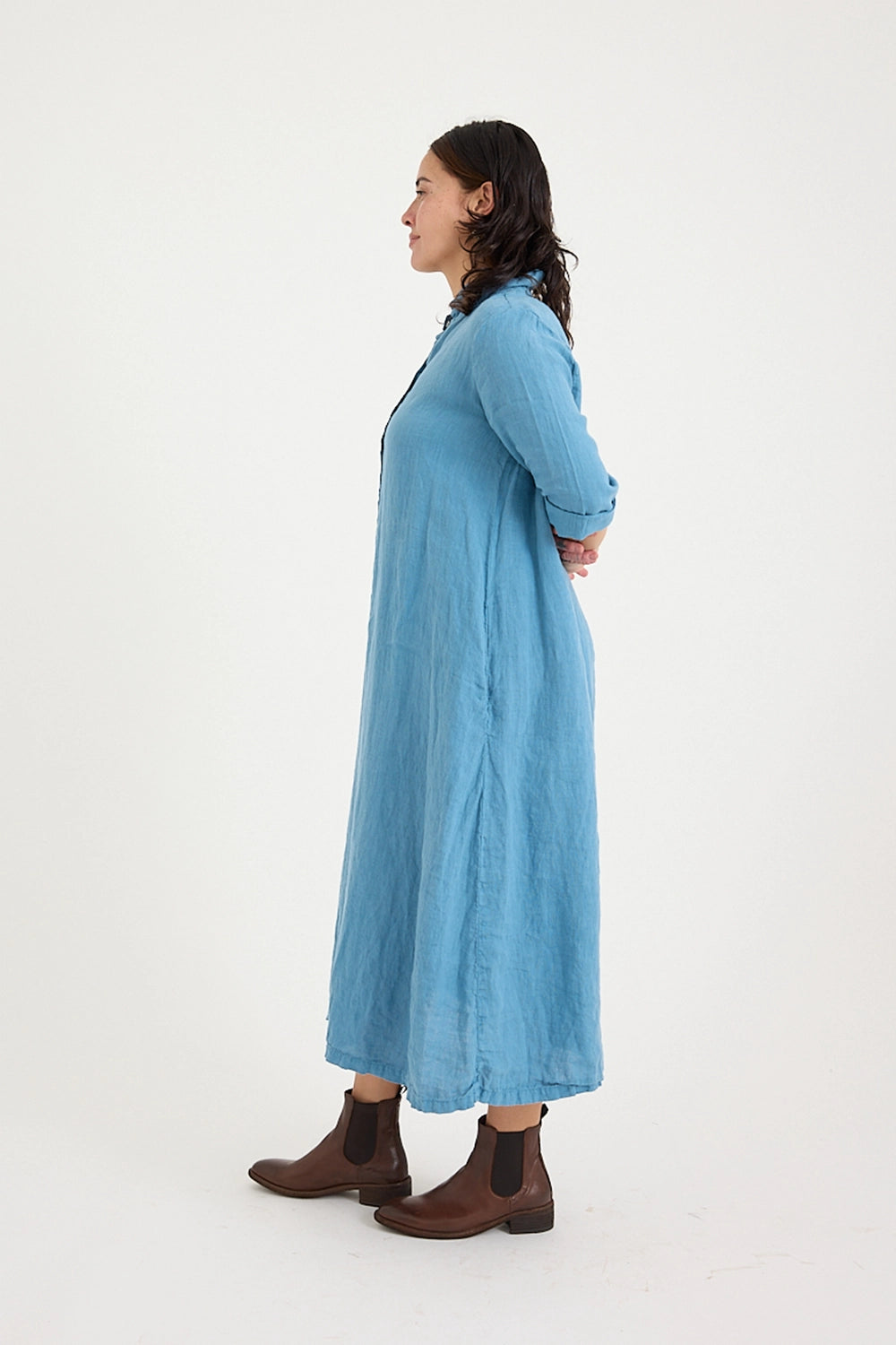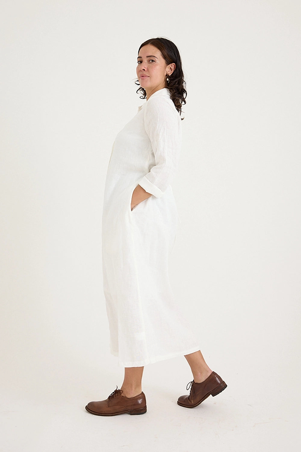 The Rose Dress in Lightweight Linen is an effortlessly flattering long-sleeve button-through shirt dress, with a traditional shirt collar. With a light drape across the body, the Rose features a thin self-fabric belt and belt loops. Naturally, the Rose has two hip pockets in the side seams, a single back pleat at the yoke for a comfortable fit across the back, and small Corozo buttons along the full-length front placket. Runs true to size, but please cross-check our measurement guide to find your perfect fit.